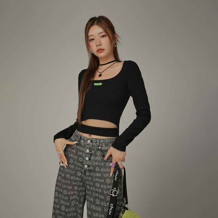 CHUU Color Matching Folded Waist Wide Denim Jeans