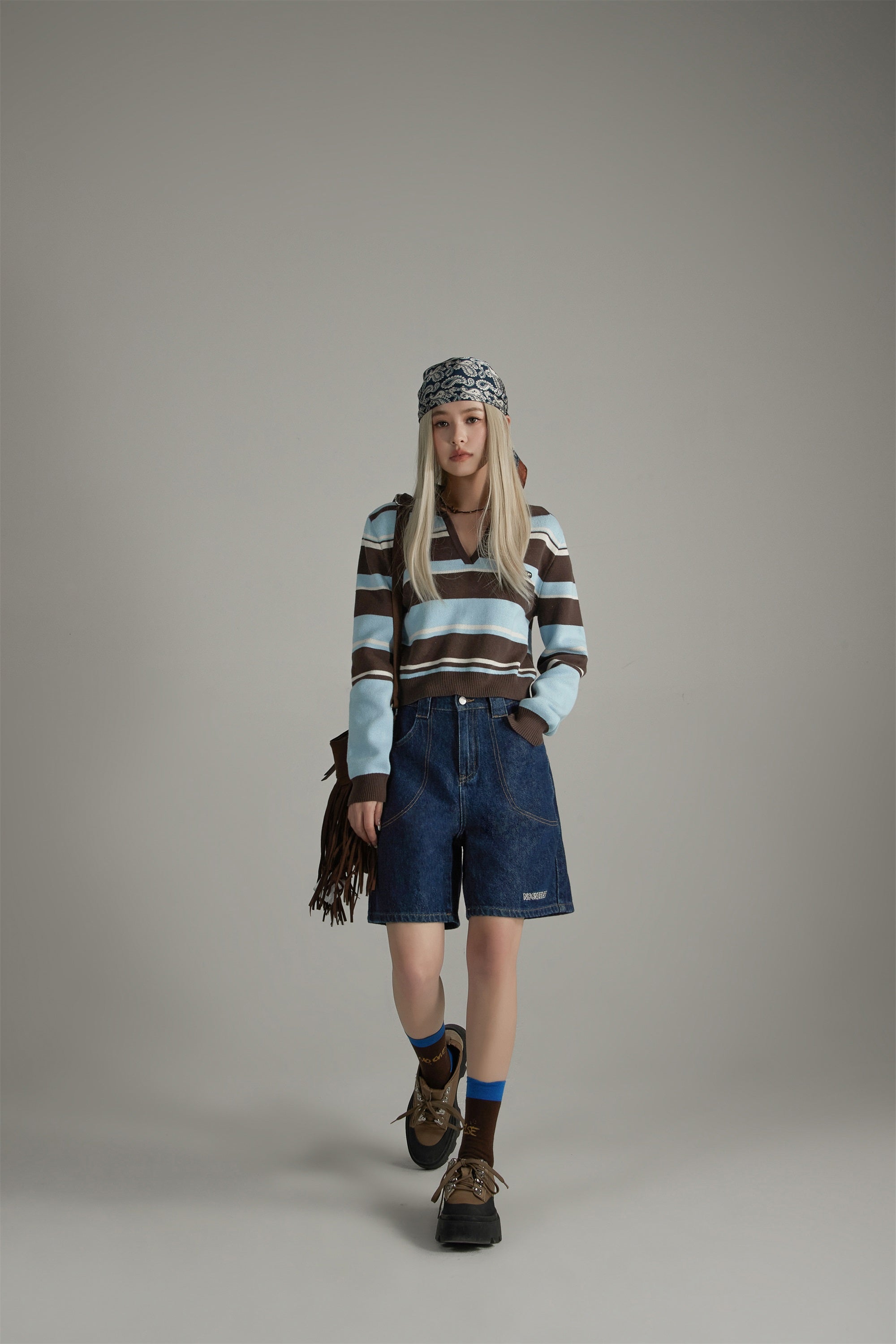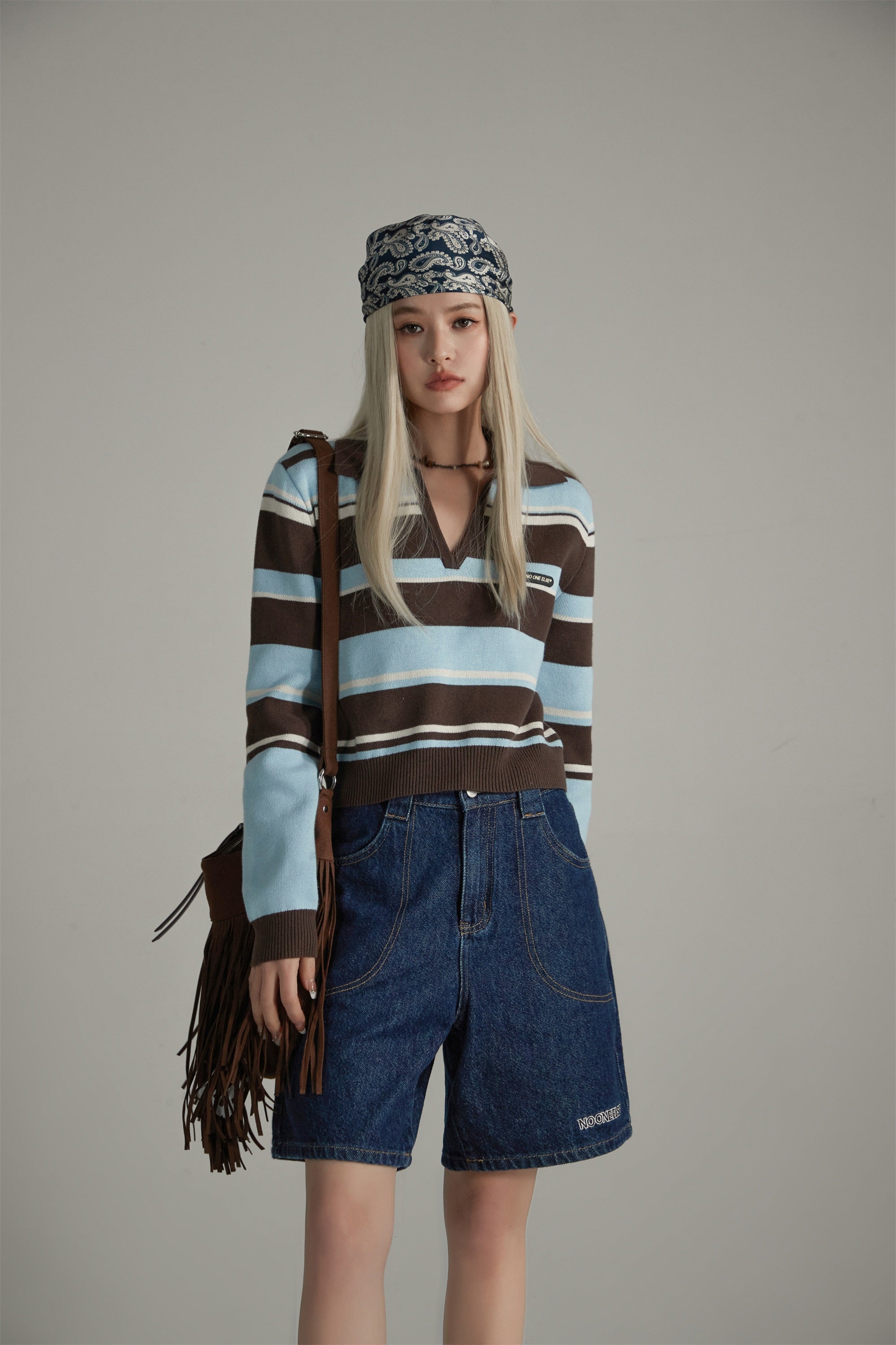 NO ONE ELSE Open Collar Stripe Color Knit Sweater by the Korean fashion brand CHUU. We deliver to the US, Canada, Australia, Singapore and Hong Kong NO ONE ELSE Sweaters. Free shipping available.