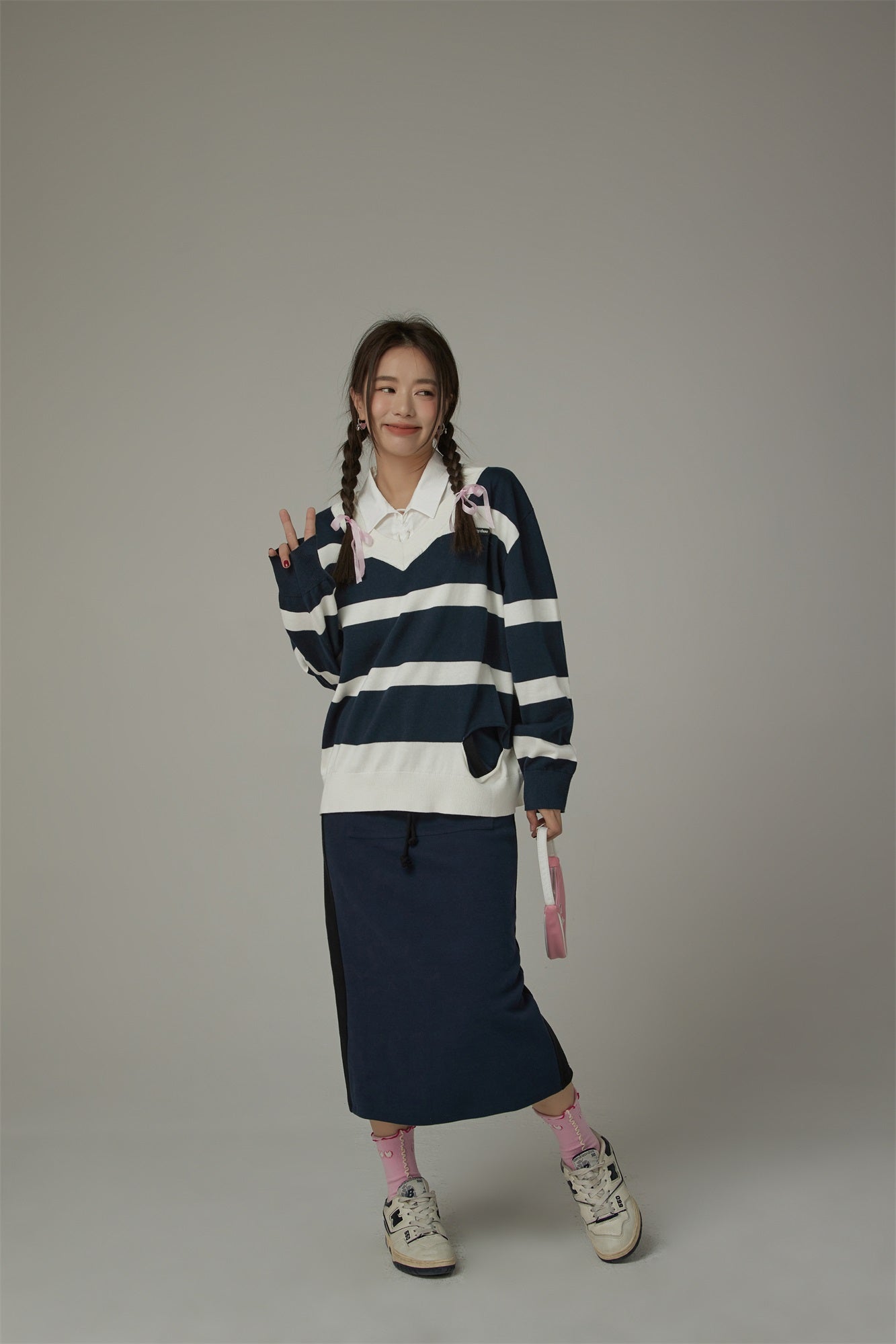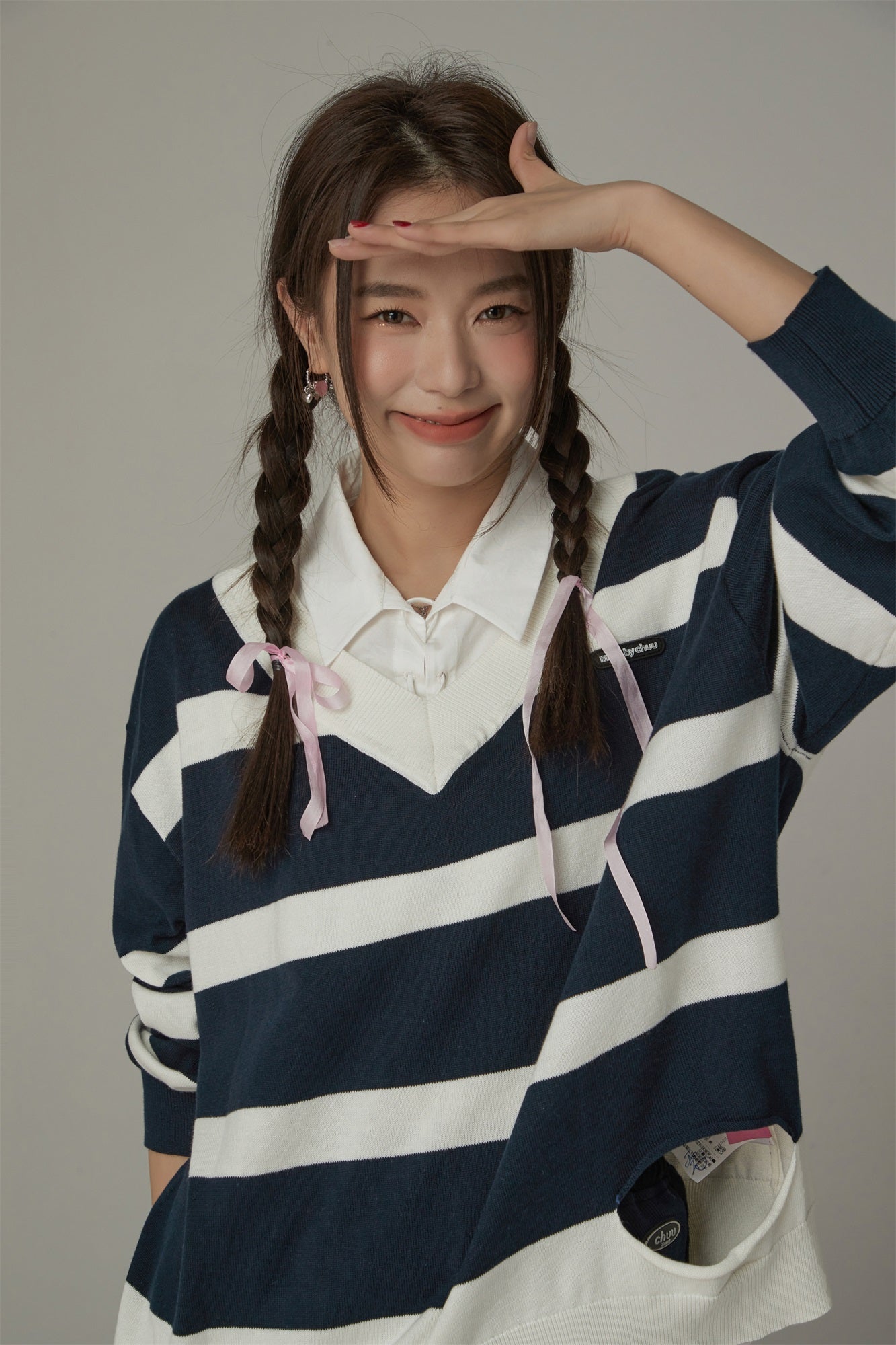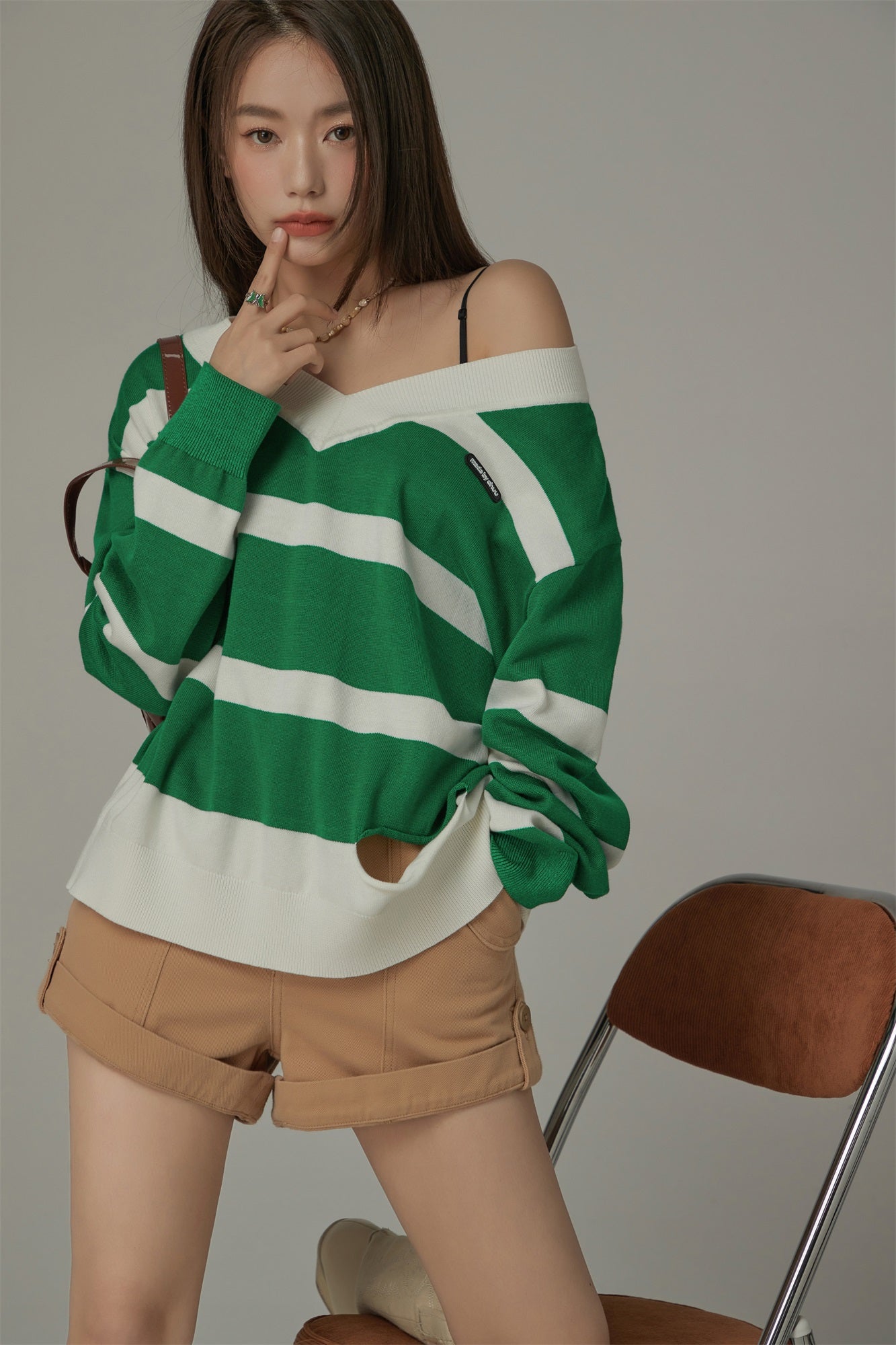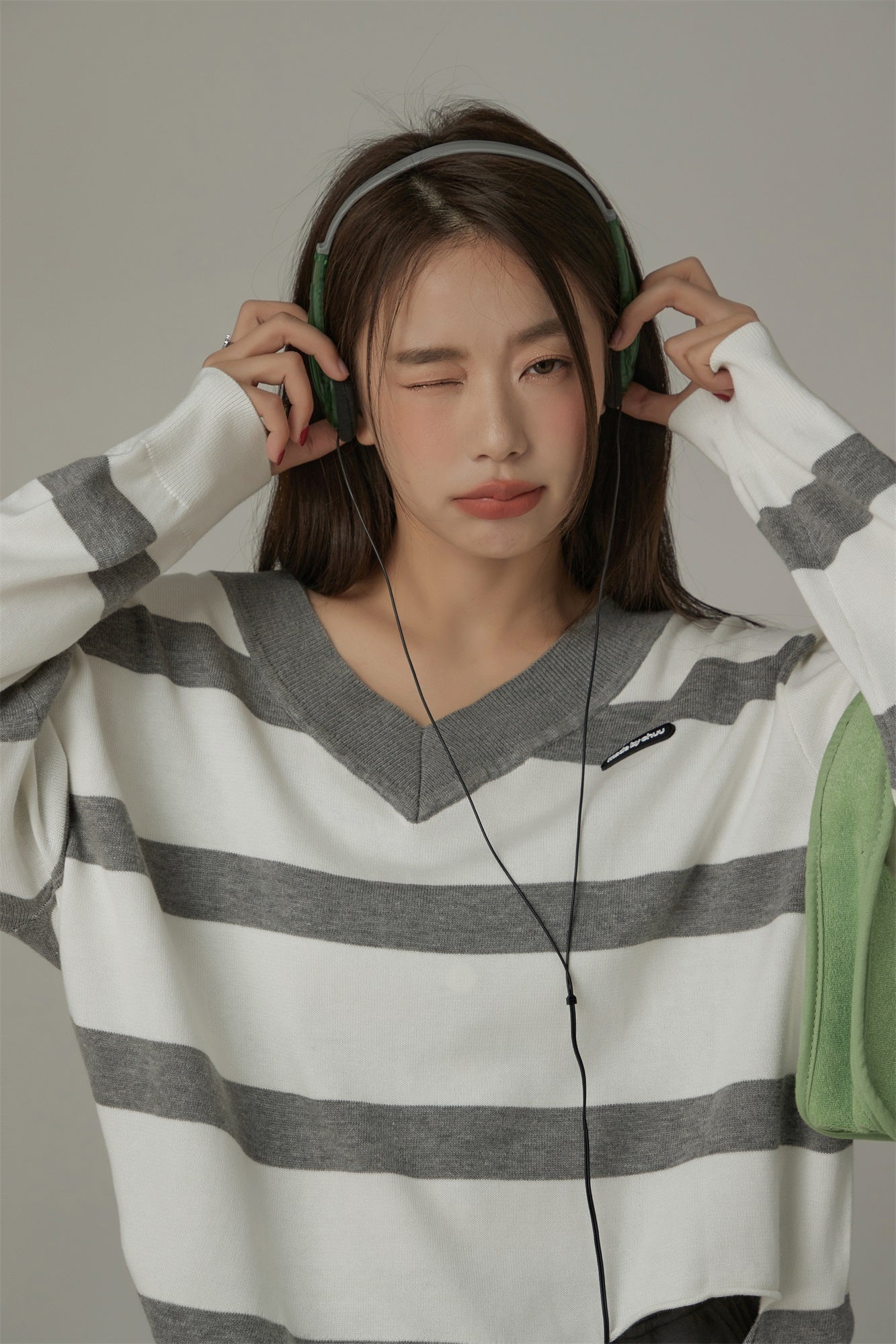 CHUU Color Matching V-Neck Striped Knit Sweater by the Korean fashion brand CHUU. We deliver to the US, Canada, Australia, Singapore and Hong Kong CHUU Sweaters. Free shipping available.Models