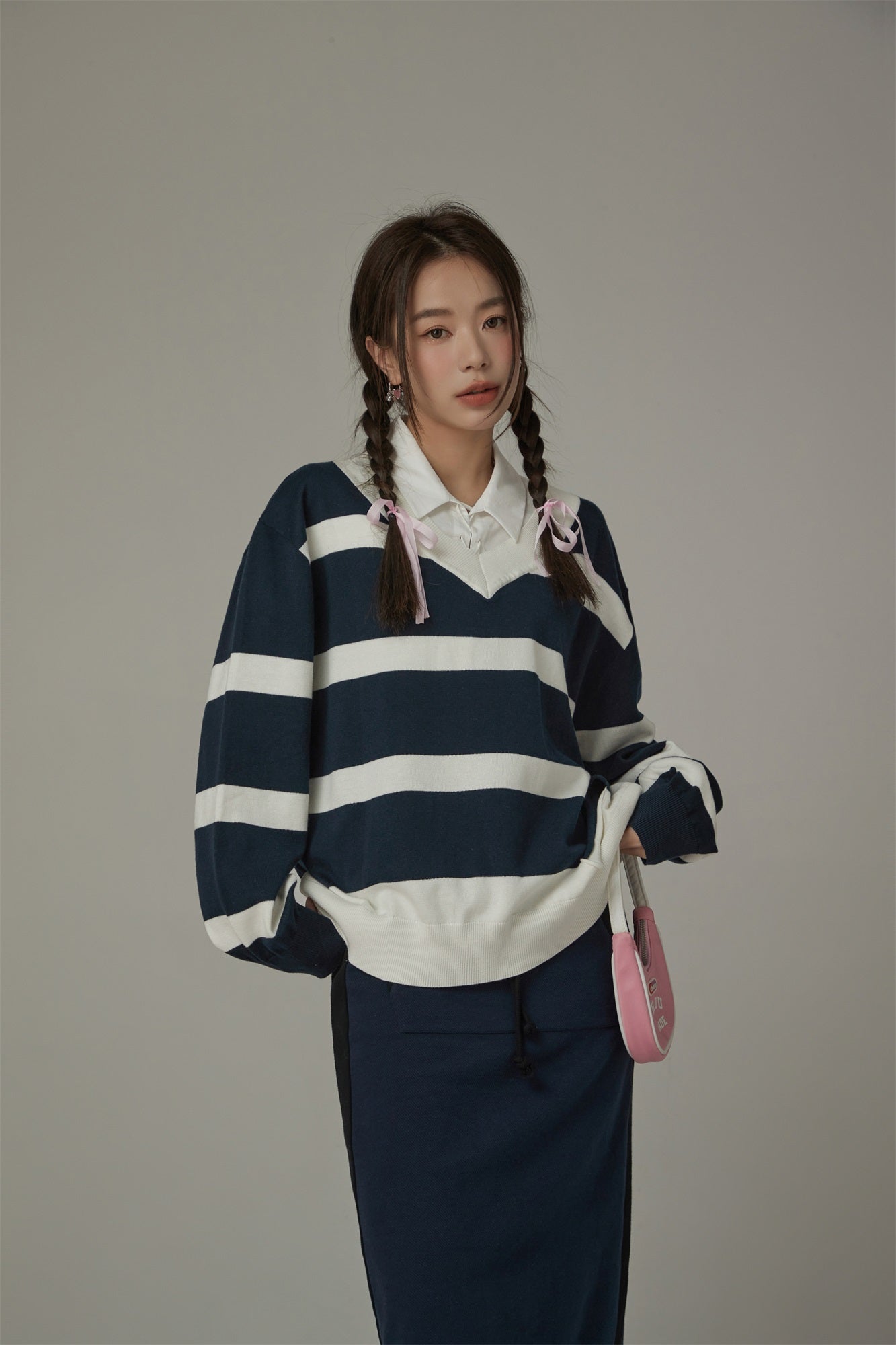 CHUU Color Matching V-Neck Striped Knit Sweater by the Korean fashion brand CHUU. We deliver to the US, Canada, Australia, Singapore and Hong Kong CHUU Sweaters. Free shipping available.