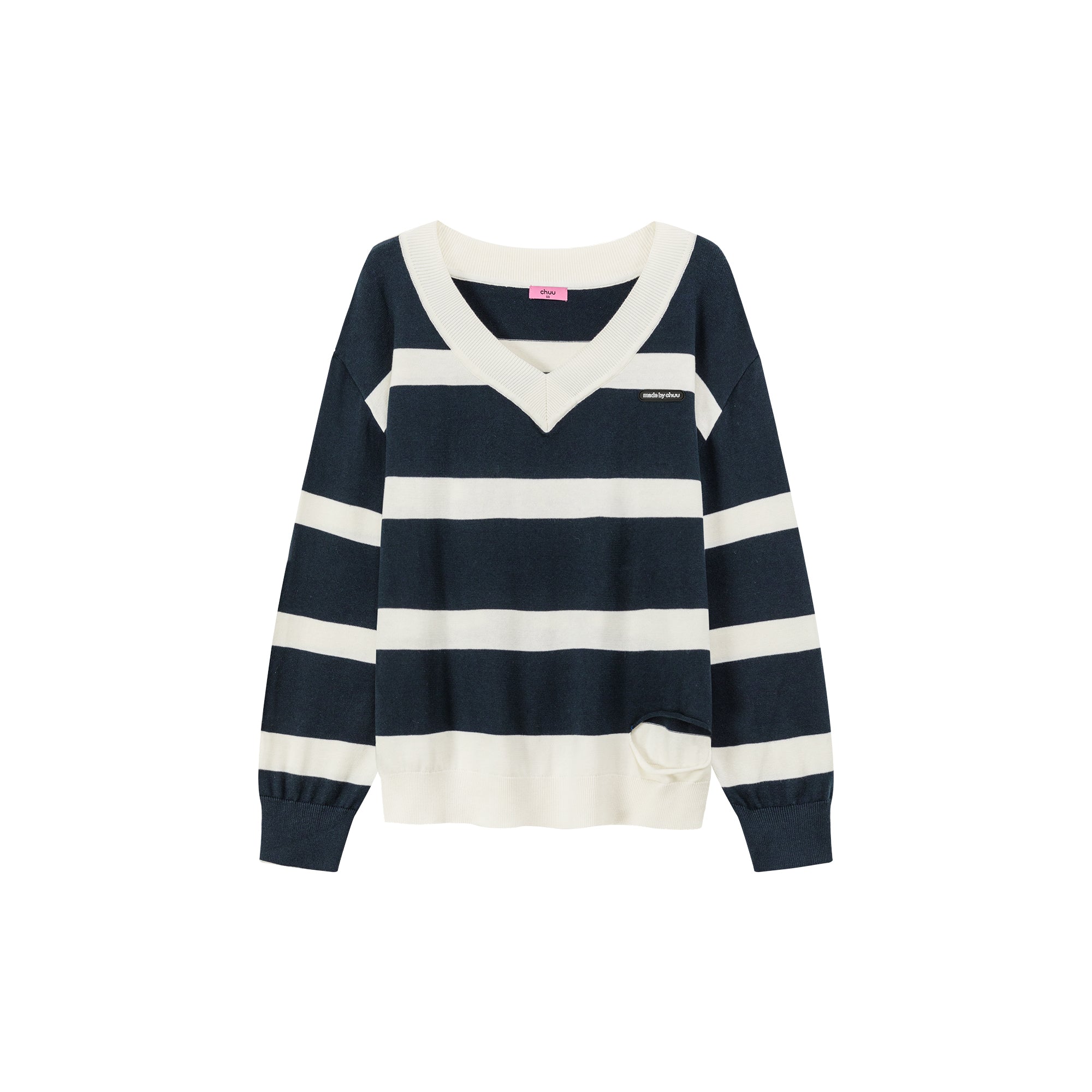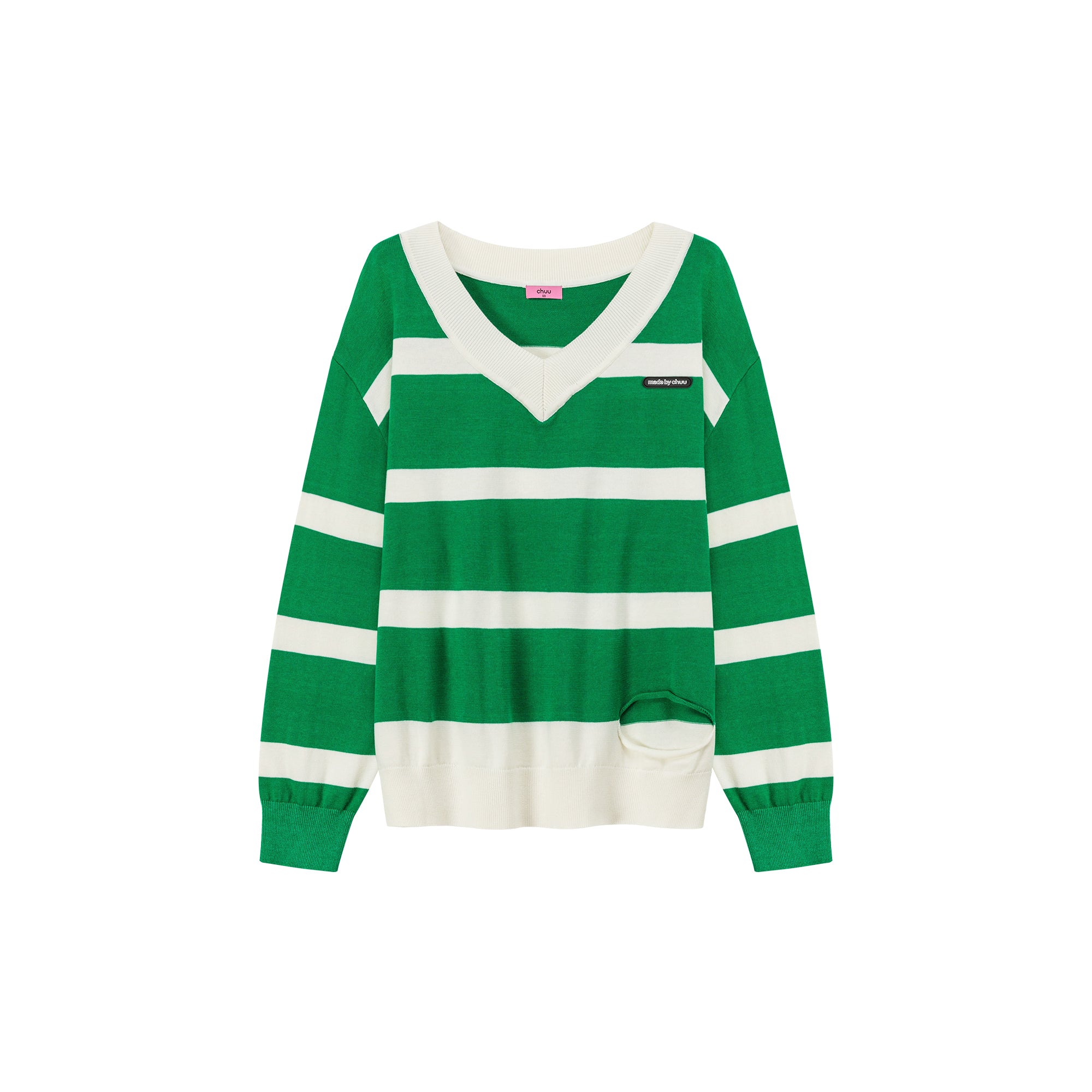 CHUU Color Matching V-Neck Striped Knit Sweater