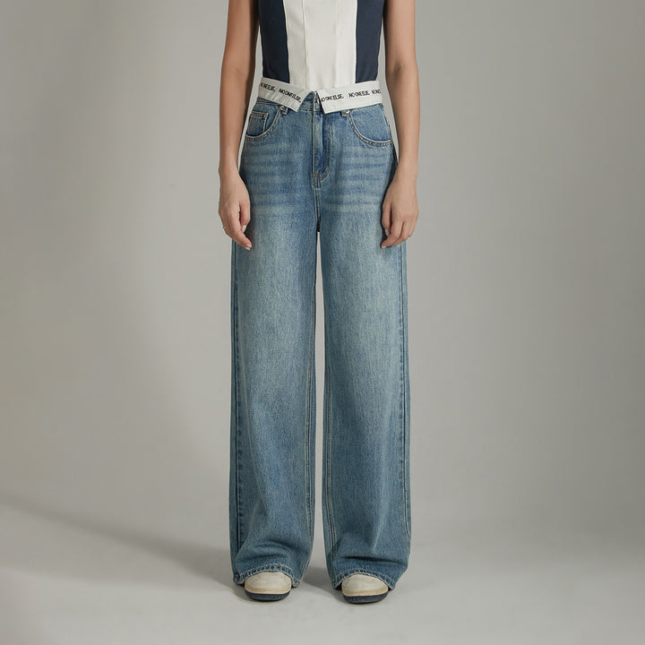 NO ONE ELSE Color Collar Stitching Retro Denim Jacket