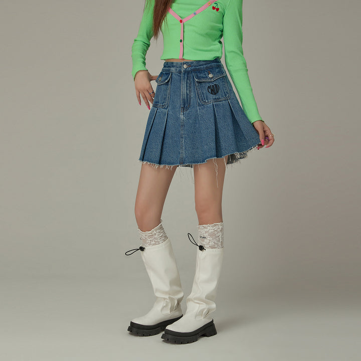 CHUU Embroidered Raw Edge Logo Sailor Denim Jacket