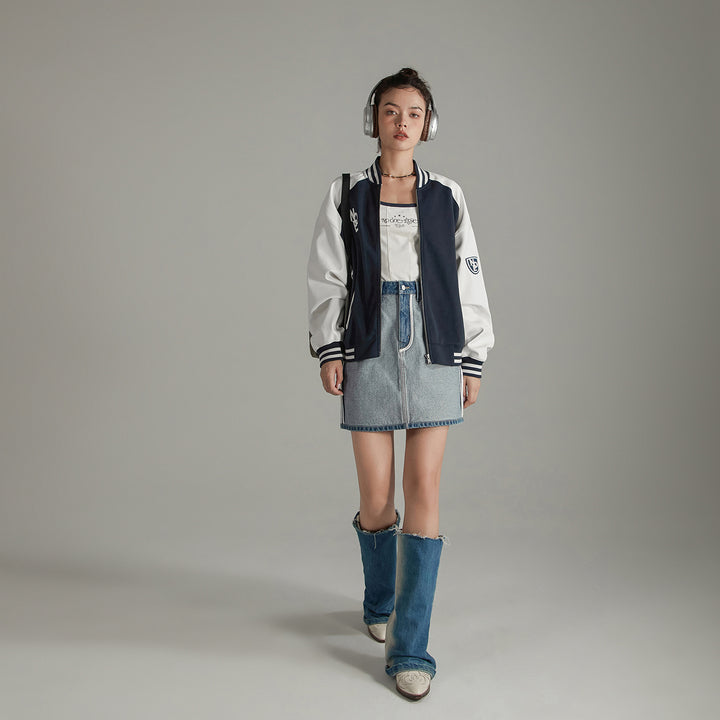 NO ONE ELSE Embroidered Letter Denim Hooded Jacket
