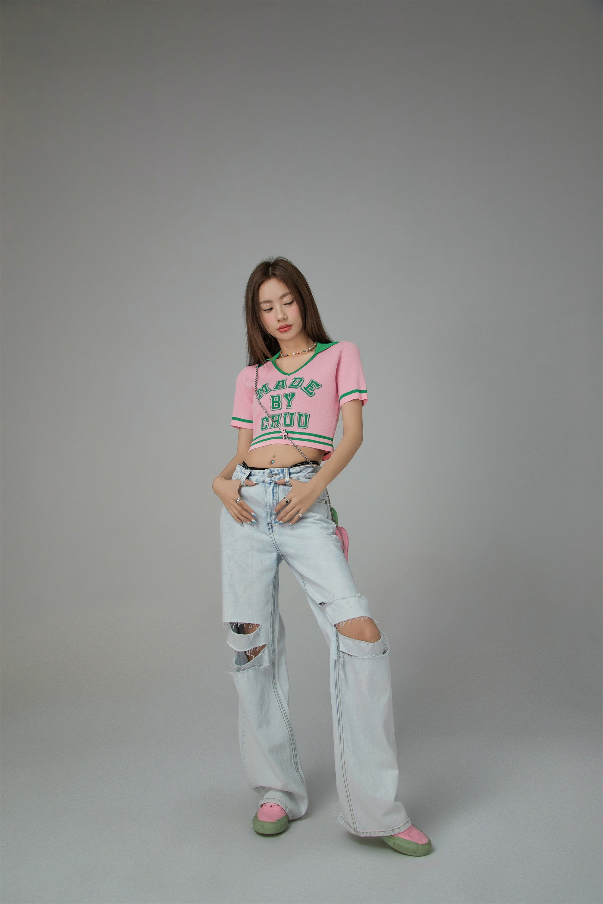 CHUU Chuu Spirit V-Neck Cropped T-shirt